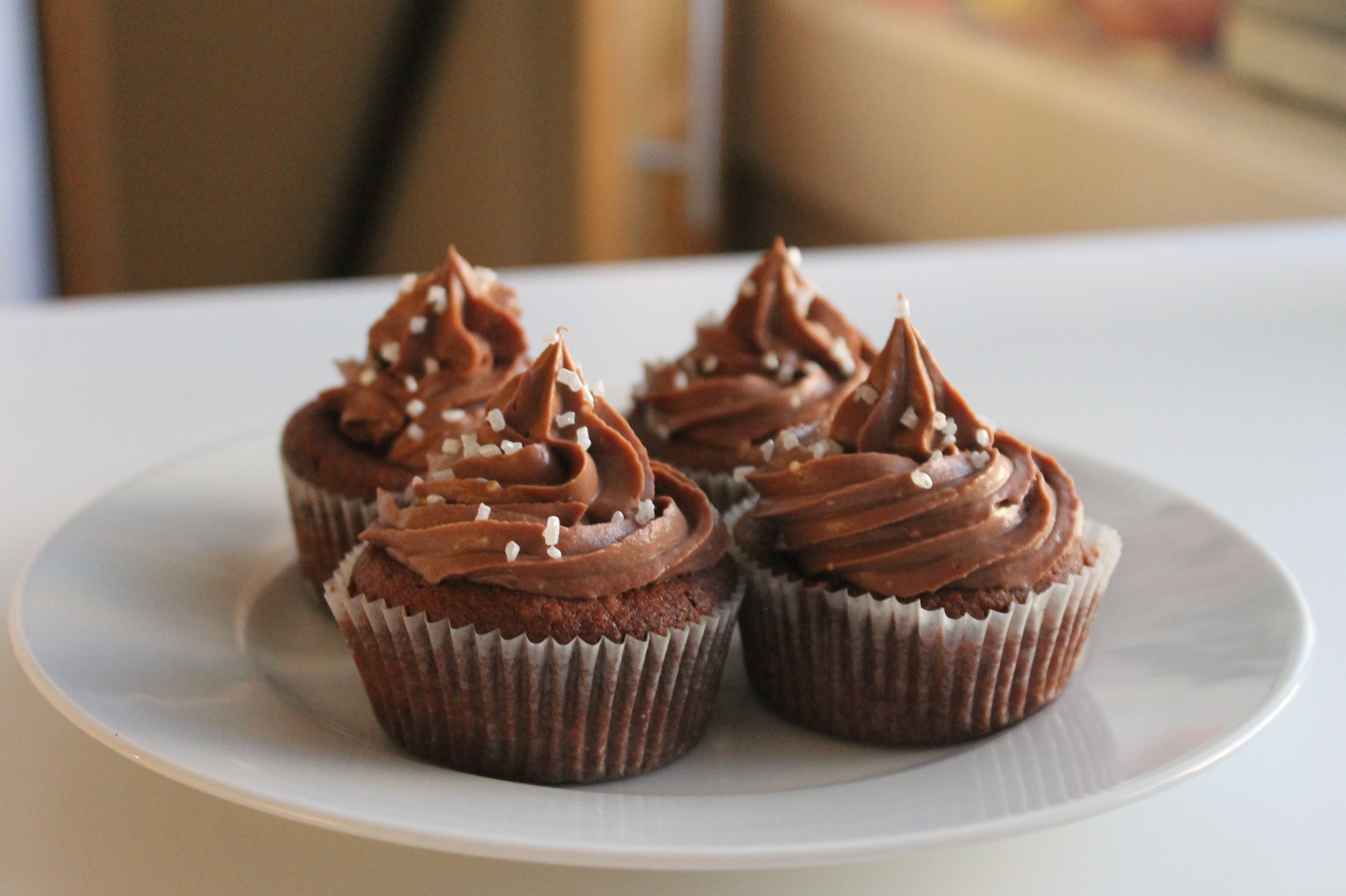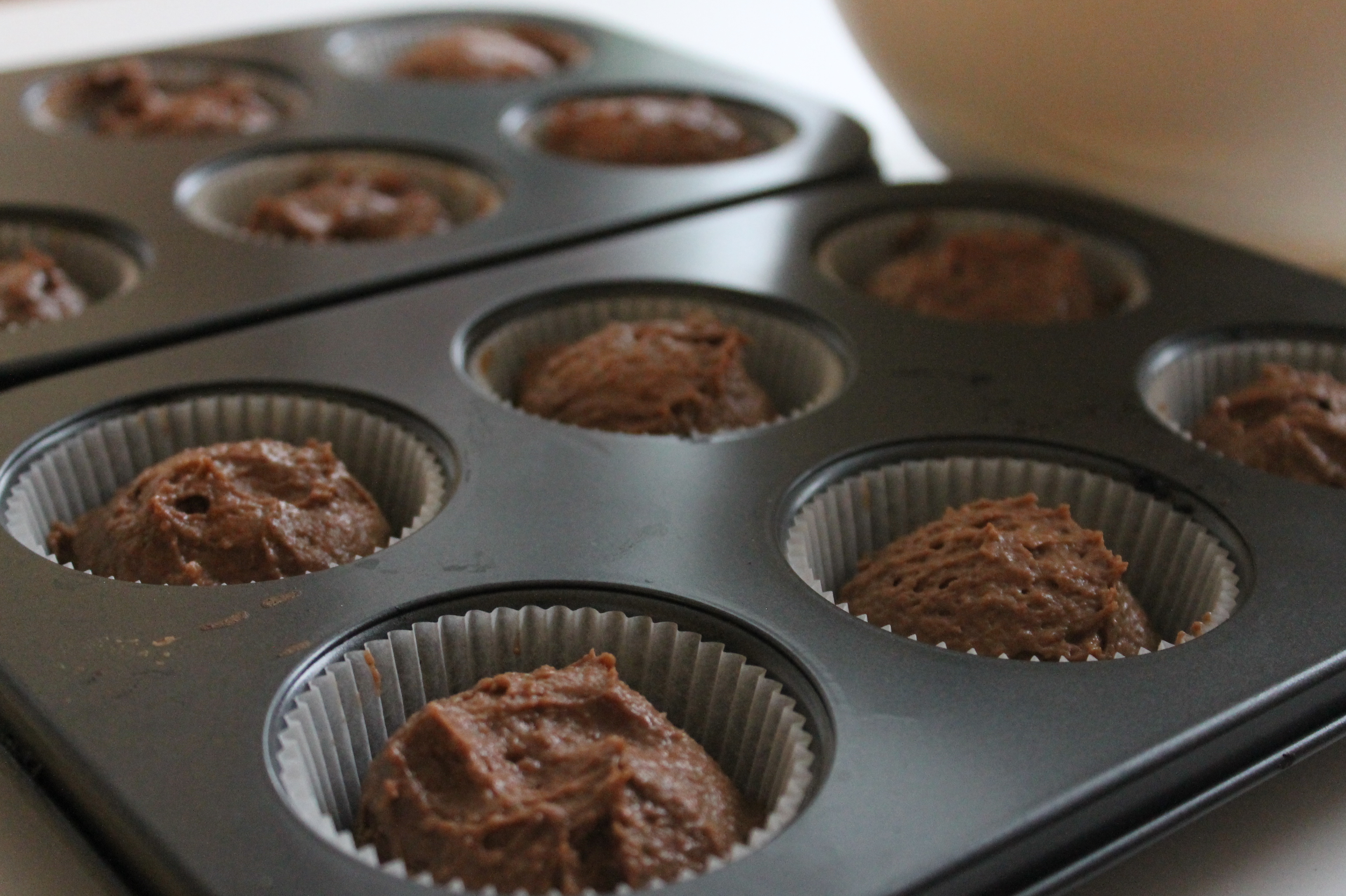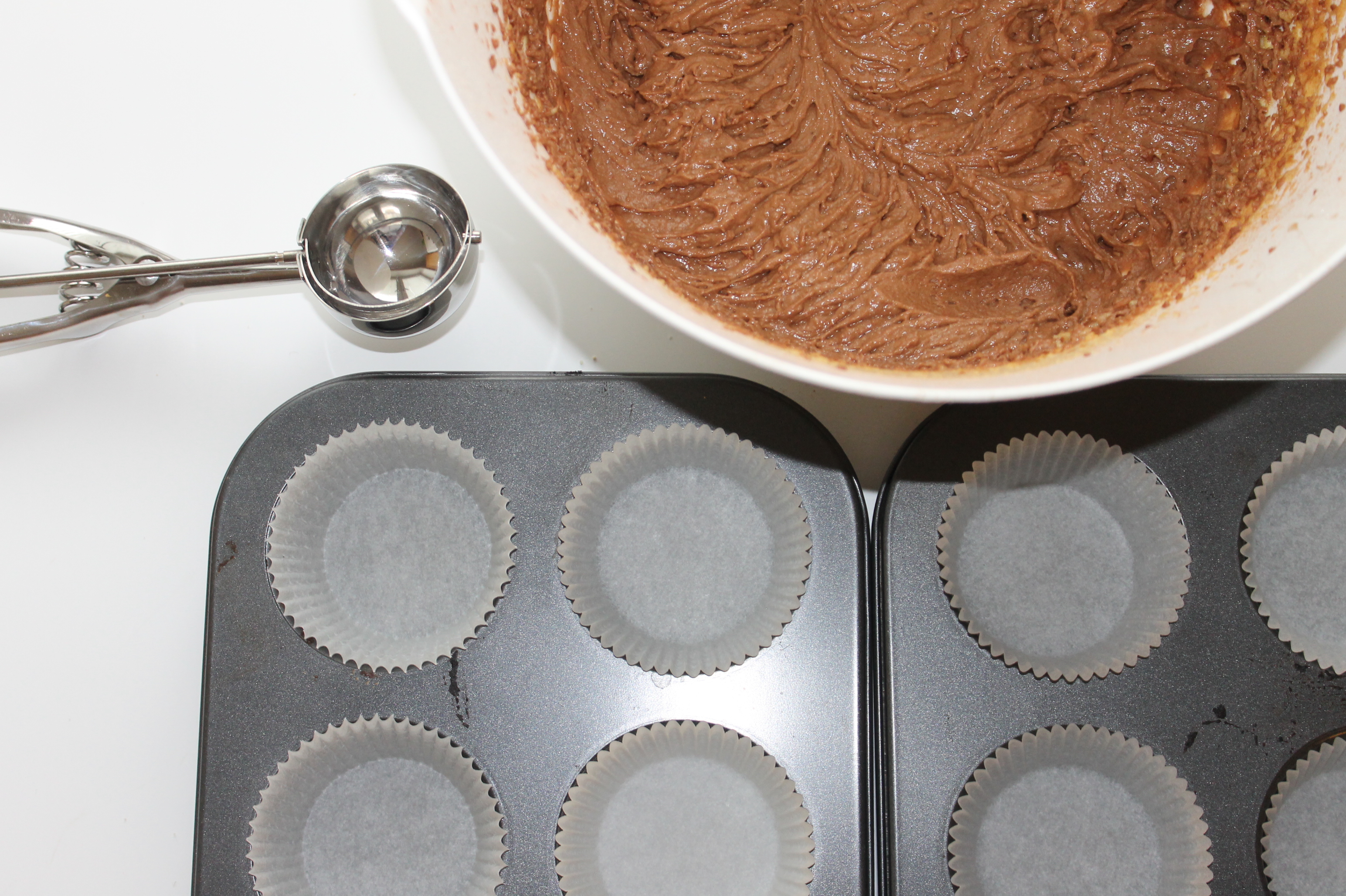 Disse er forholdsvis lyse sjokomuffins ettersom at jeg trodde vi hadde mørk kokesjokolade i skapet, men vi hadde lys…men disse ble kjempe gode uansett.