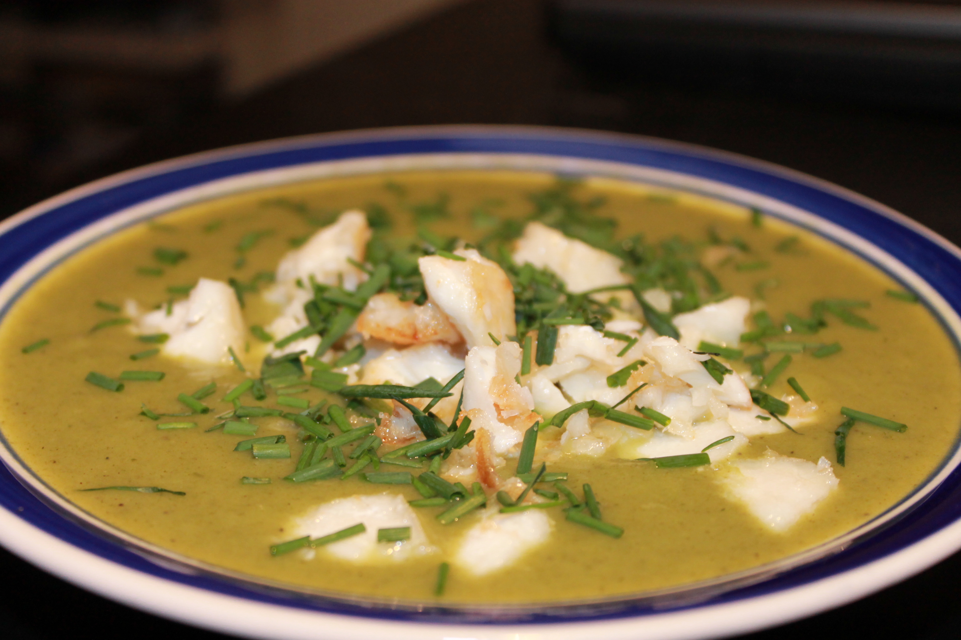 Hard stek torsken og ha det oppi suppen med gressløken.