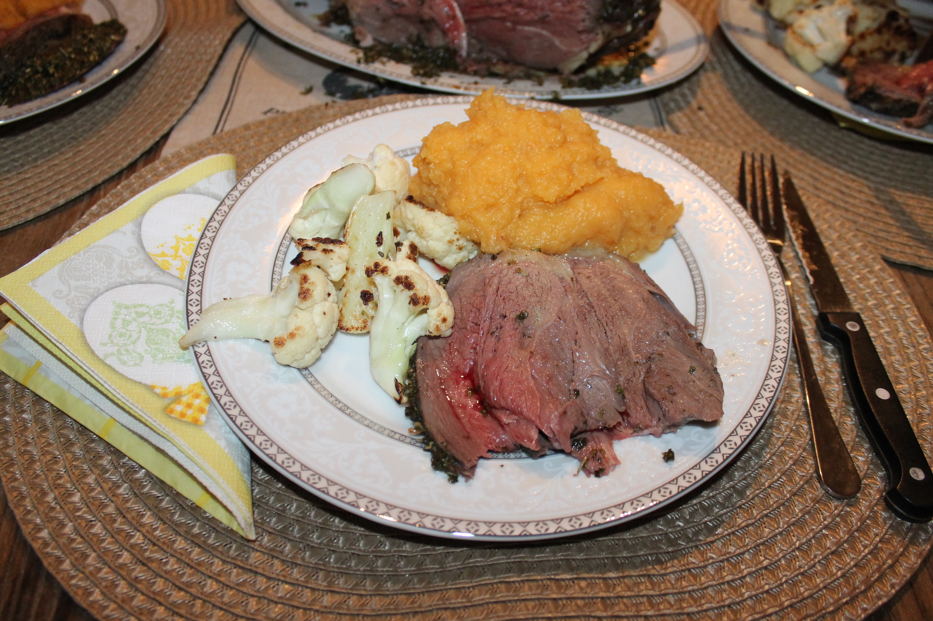 Vi serverte lammelåret med min hjemmelagde kålrabi/søtpotet rotmos (oppskrift kommer senere) og stekt blomkål.