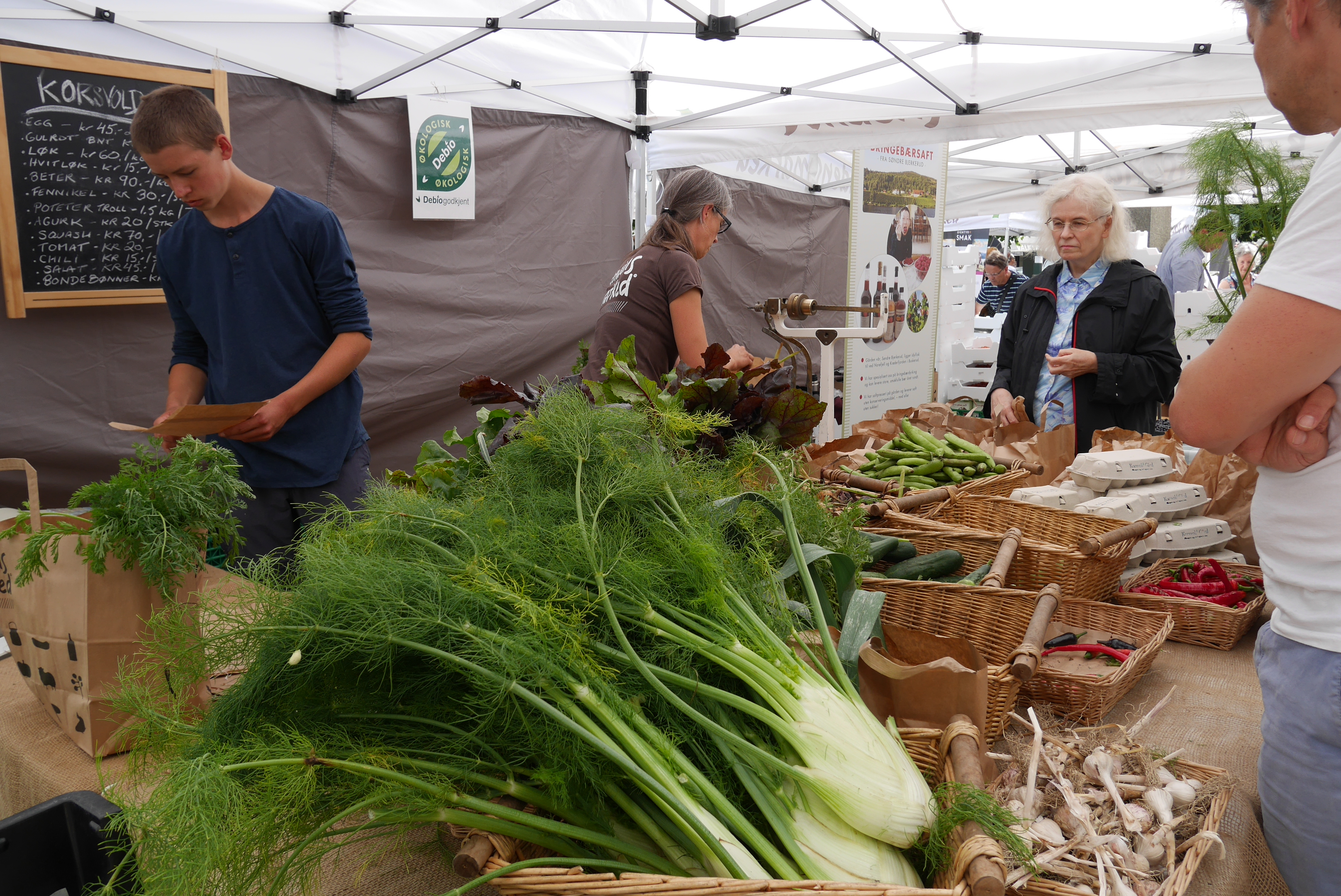 Vi er veldig glad i bondens marked, vi prøver å dra på de markedene som er rundt om i Oslo. Vi liker at pengene vi betaler med går direkte til bonden, i tillegg er mye av produktene/matvarene som blir solgt økologiske. Det liker vi svært godt.