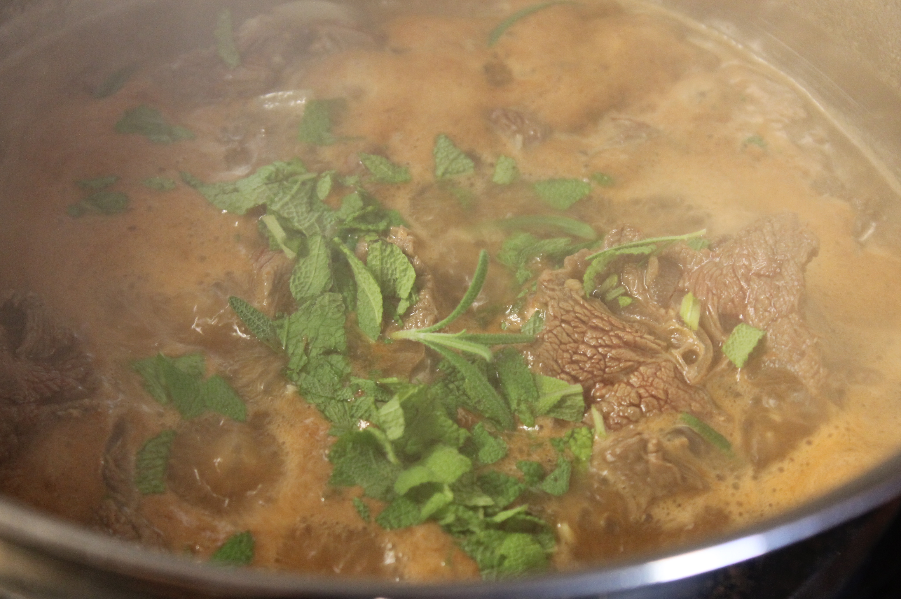 3.) Ha oppi worcehstershire saus, tomatpurè og urtene. Og la kjøttet godtgjøre seg på lav varme i en time